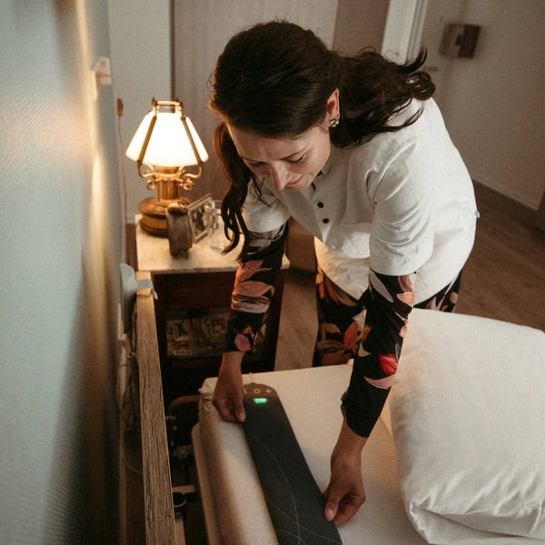 Der Qwiek.snooze bietet eine innovative Lösung: eine komfortable Musikmatte für unter das Kopfkissen, die beruhigende Musik und angenehme Reize liefert.